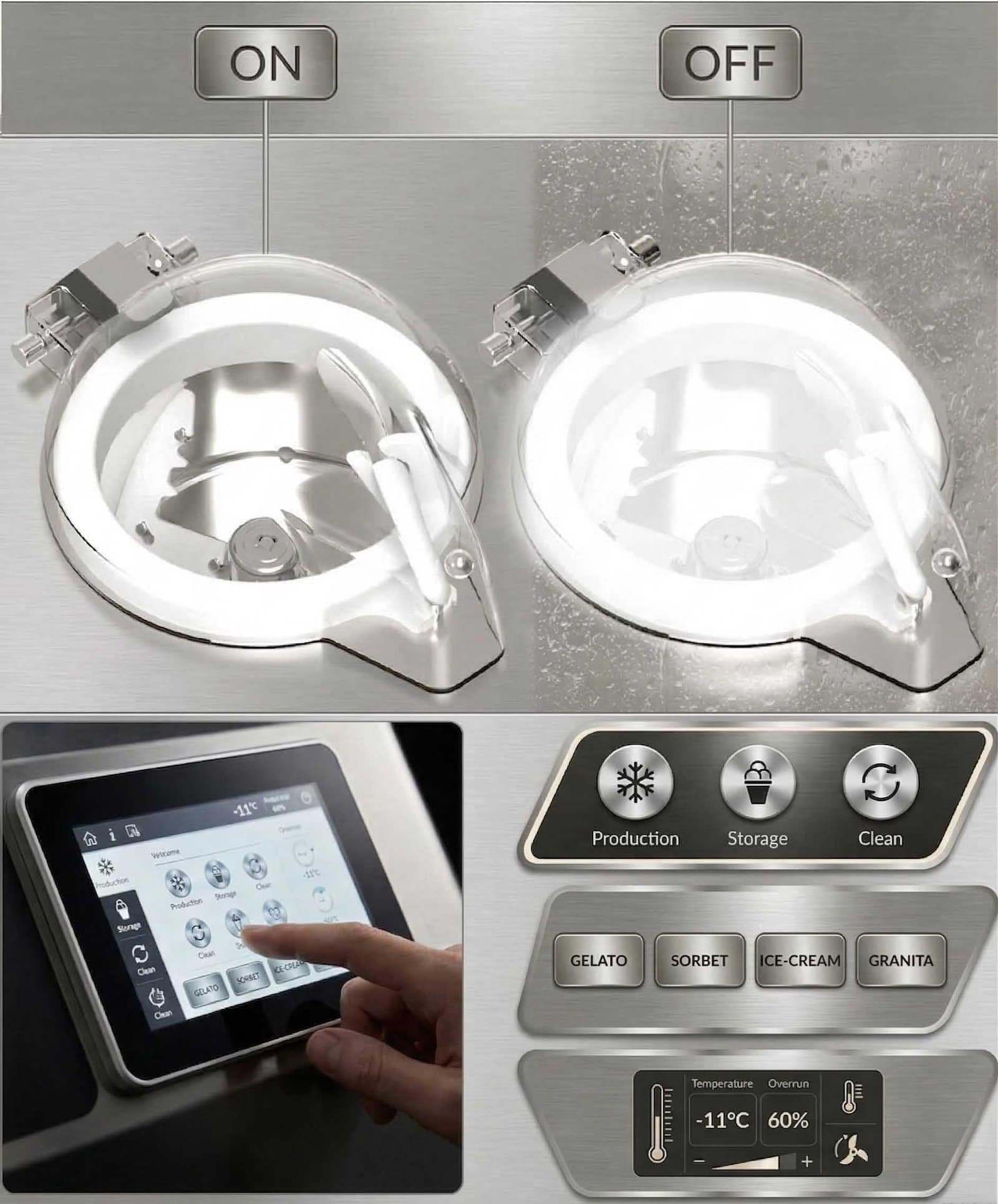 Four easy programmable product modes: gelato, ice cream, sorbet, and granita