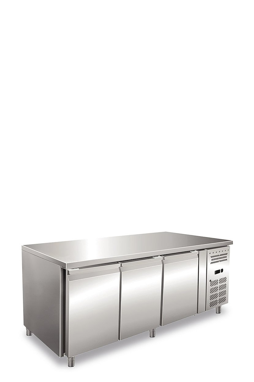 The CXF 3100 BT is a professional ventilated freezer counter with three stainless steel doors, perfect for restaurants, bars, and catering kitchens. Built from high-quality AISI 304 stainless steel, it guarantees durability, hygiene, and easy maintenance. This commercial-grade freezer maintains a stable temperature range from -22°C to -18°C, ensuring optimal preservation of frozen goods. Equipped with an electronic thermostat, soft-closing doors, and automatic defrost, it offers reliability and convenience for intensive daily use.