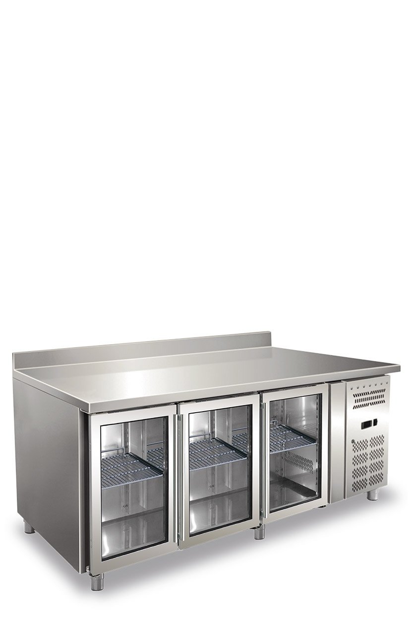 The CXF 3200 TNG is a professional three-door glass refrigerated counter with rear splashback, perfect for restaurants, bars, and catering environments that need both visibility and performance. Built from AISI 304 stainless steel, it combines hygiene, durability, and a modern design. Operating in a temperature range of +2°C to +8°C, it ensures uniform cooling and energy efficiency. Equipped with tempered glass doors, LED lighting, electronic thermostat, and automatic electric defrost, it delivers reliable performance with an elegant presentation.