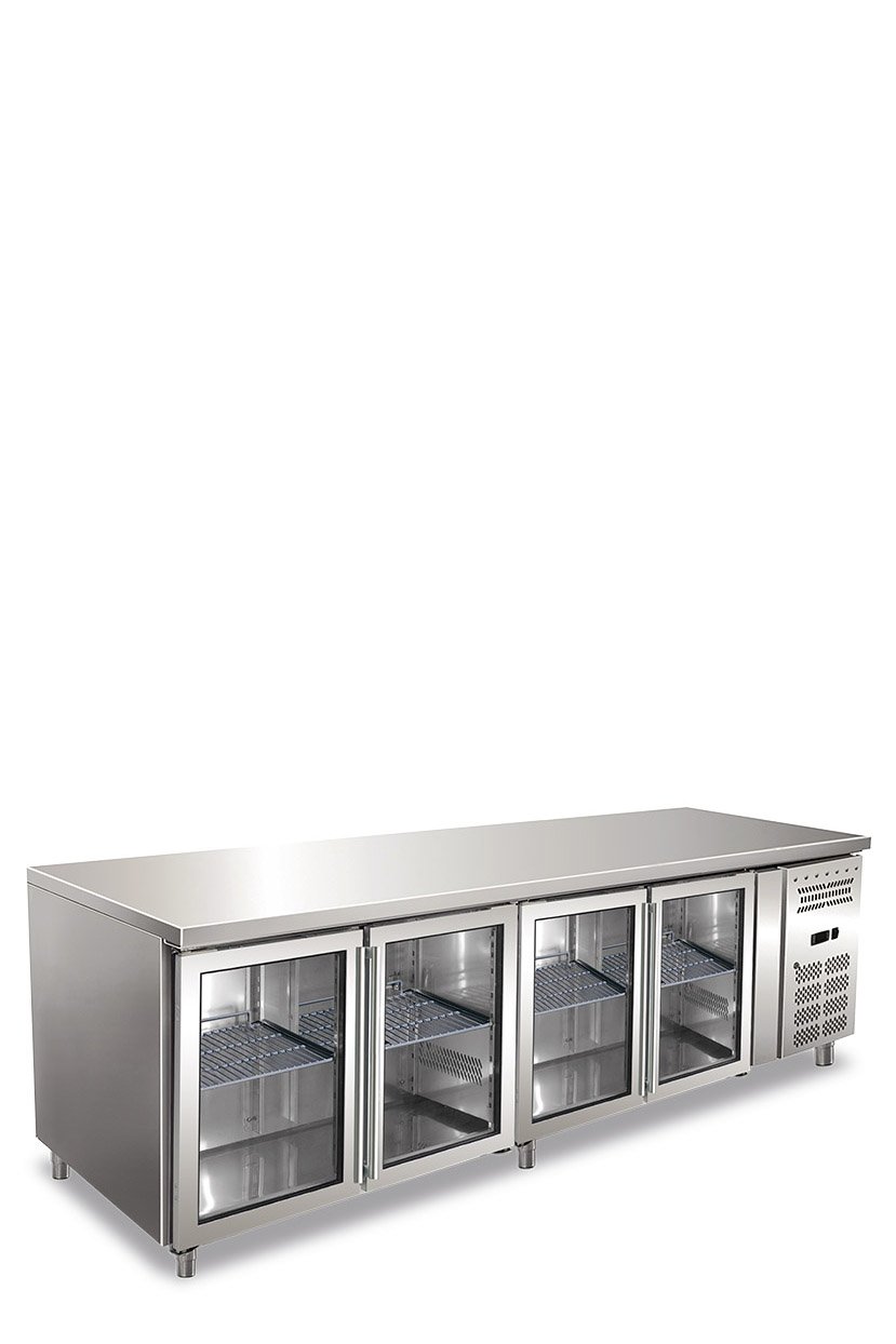 The CXF 4100 TNG is a professional four-door ventilated refrigerated counter with glass doors, ideal for restaurants, hotels, and catering kitchens. Built from premium AISI 304 stainless steel, it combines durability, hygiene, and elegant display functionality. Operating in a temperature range of +2°C to +8°C, it ensures uniform cooling and product visibility. Equipped with LED lighting, soft-closing glass doors, electronic thermostat, and automatic electric defrost, it delivers reliable and energy-efficient performance.