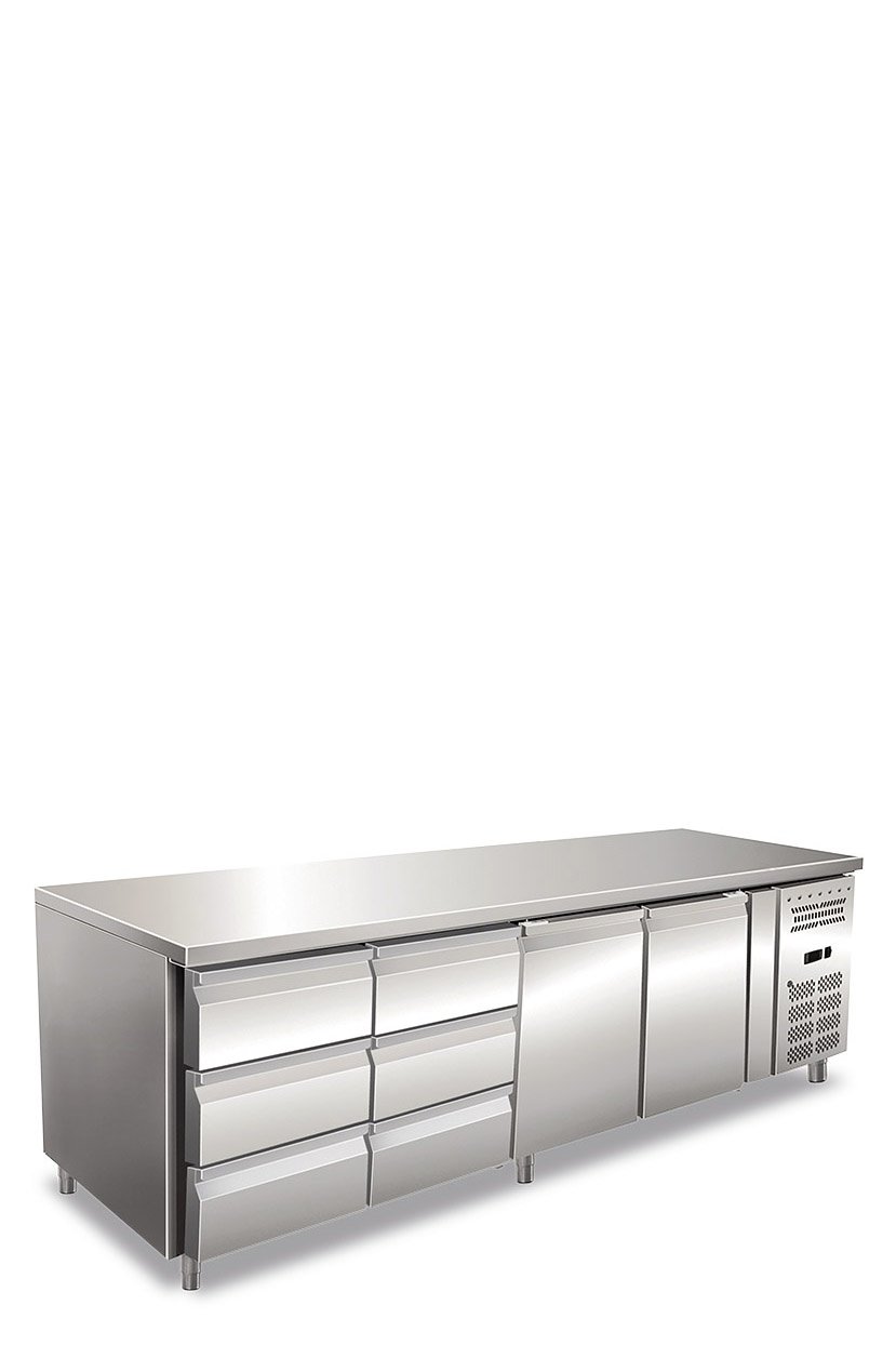 -2 °C / +8 °C Ventilated refrigerated table, four doors. Positive temperature. Version with 2 refrigerated drawer packs da N.3 drawers da 1/3