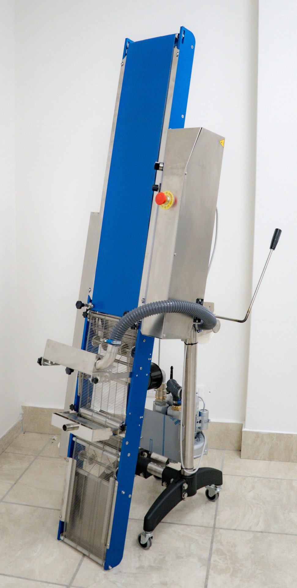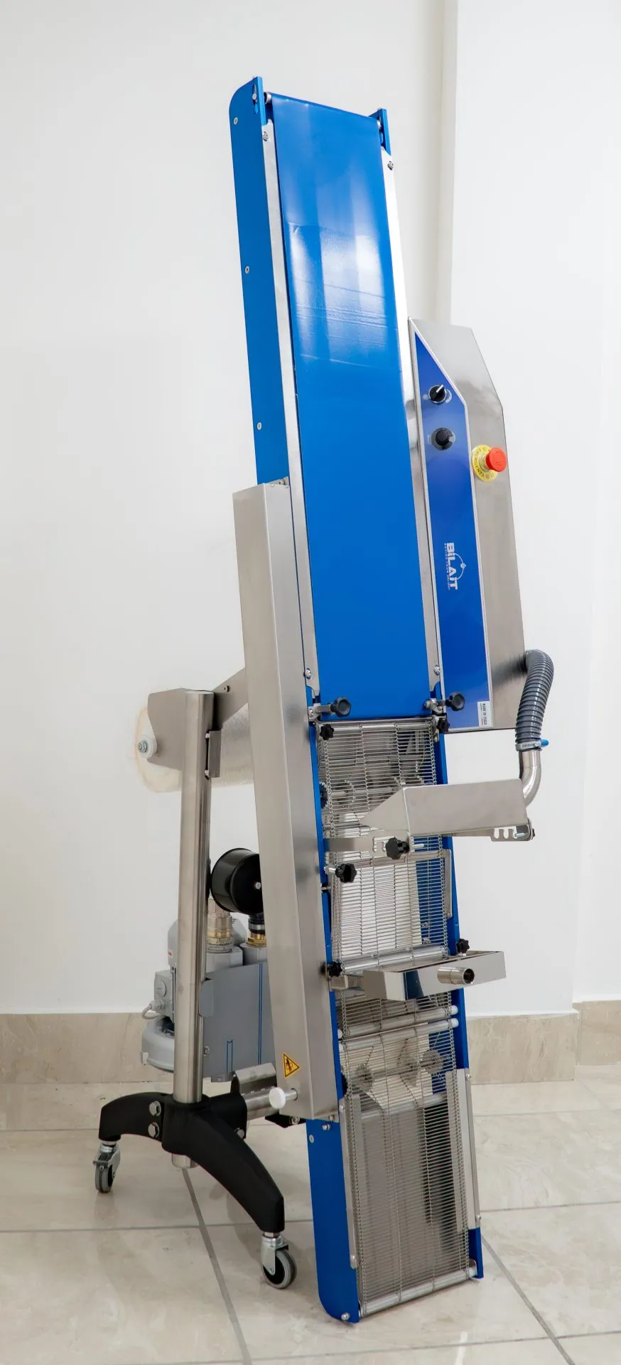 Equipped with a stainless steel grid, the conveyor belt allows the creation of a chocolate cascade, enabling smooth coating of biscuits, fruits, nuts, and other confectionery items. A built-in blower system ensures excess chocolate is removed, leaving products with a clean, uniform finish.