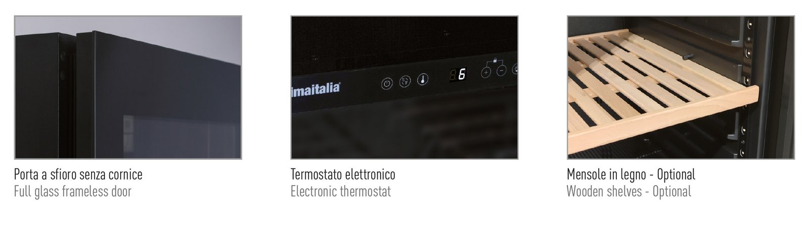 The CV 180 BEV is a ventilated beverage cooler with a modern full glass frameless door, electronic thermostat, and optional wooden shelves. Designed for bars, restaurants, convenience stores, and cafés, it provides precise temperature control and efficient storage for bottles and cans.