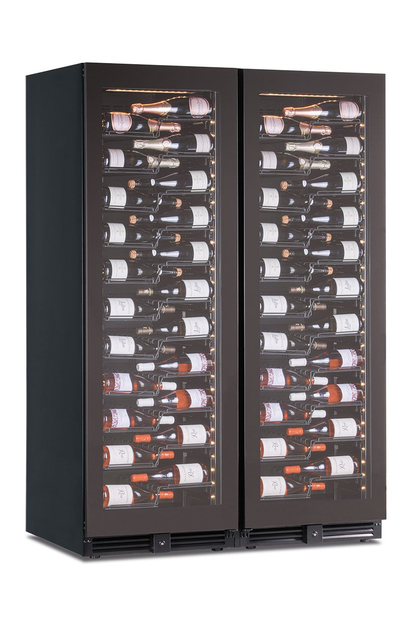 The CW 355 G2TB is a premium dual-door wine cooler designed for large collections and professional storage environments. Combining modern elegance with advanced cooling technology, it features a frameless full black glass design, Z-shape sliding metal shelves, and soft LED lighting for a refined presentation of up to 256 bottles.