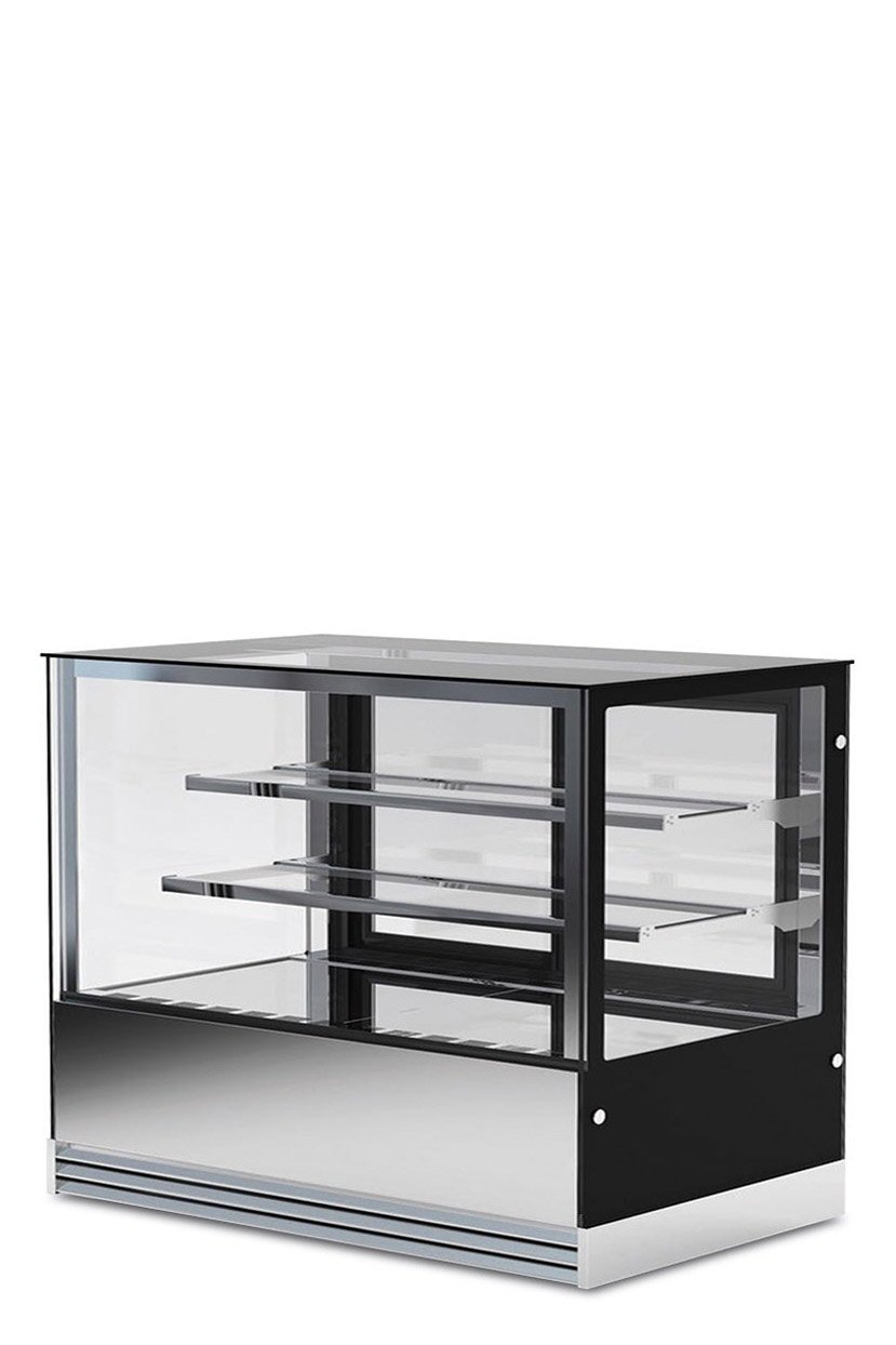 The DELUXE 152 PSV is a large-format, elegant refrigerated display case designed for high-volume patisseries, bakeries, and premium cafés. With its panoramic four-sided glass structure, sliding rear doors, and sleek stainless steel + black glossy finish, it offers both stunning visibility and top-tier performance.
