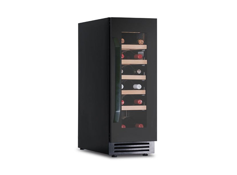 Its ventilated cooling system ensures consistent air circulation, while the uniform LED lighting enhances visibility and adds a touch of sophistication to your collection. Compact yet efficient, the DW 20 G1T can hold up to 19 Bordeaux-style bottles (0.75L), making it an excellent choice for modern kitchens, bars, or wine cellars.