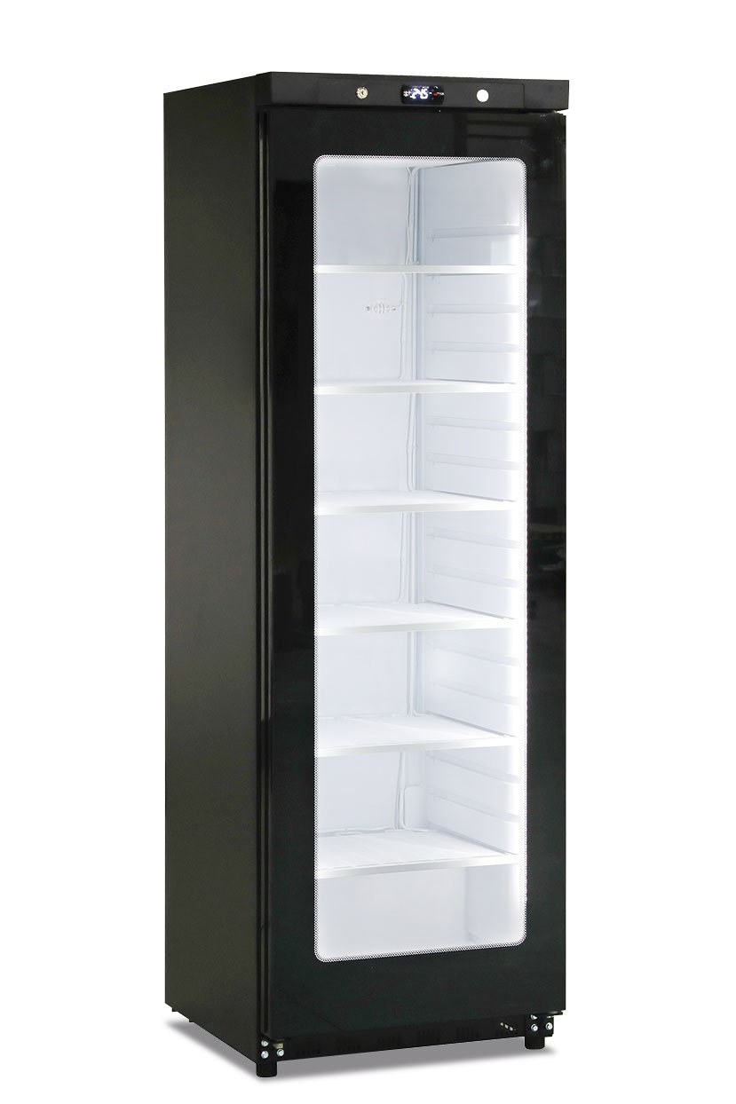 The GN 400 G BT BLK is a professional static freezer cabinet with a frameless glass door, finished in elegant black — perfect for pastry shops, restaurants, and display environments. Built from pre-painted anti-corrosion steel with an ABS interior, it ensures durability and hygiene. Operating between -22 °C and -15 °C, it delivers stable freezing performance with clear product visibility. Equipped with an electronic thermostat, LED lighting, manual defrost, and a self-closing tempered glass door with lock, it combines efficiency and modern design.