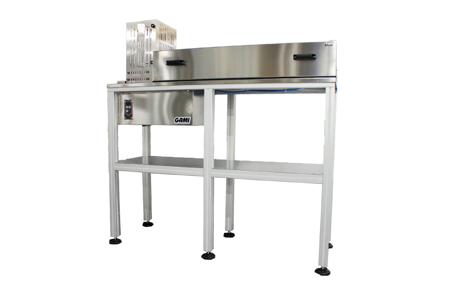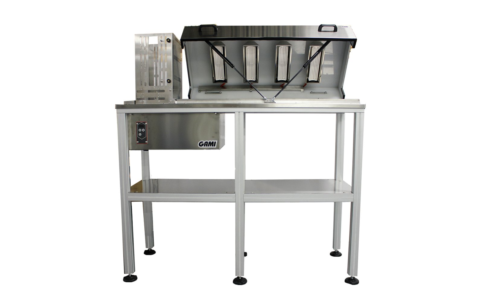 The Heating Loader for Moulds is a specialized accessory designed to optimize the One Shot production process by preheating moulds before filling. By delivering moulds directly onto the One Shot belt at up to 12 cycles per minute, it ensures smooth, precise, and efficient chocolate production.