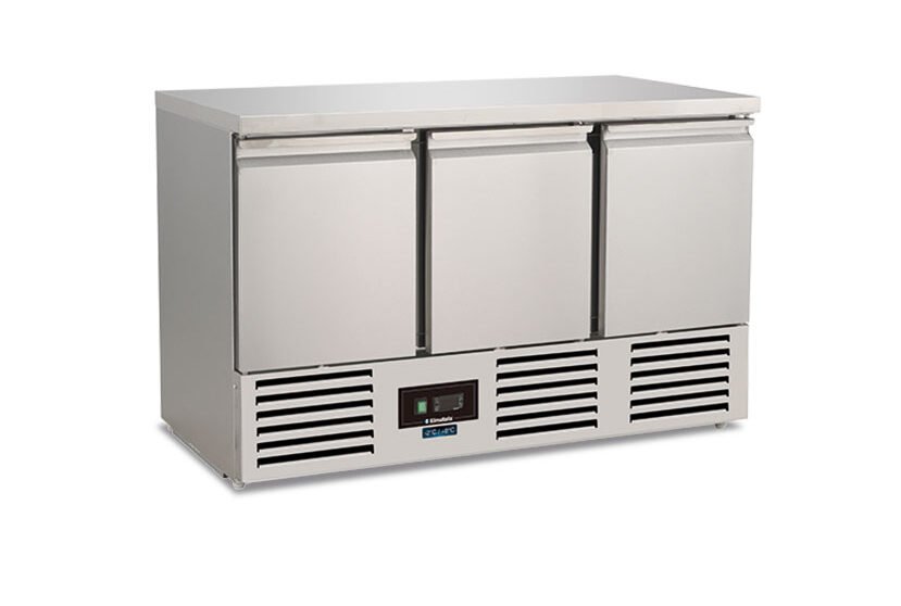 The SALADETTE SF 903 TOP is a high-quality static fan-assisted saladette bench, designed to meet the demands of professional catering environments. Built with a durable AISI 304 stainless steel body and inner liner, it ensures maximum hygiene, strength, and resistance to corrosion. Its electronic thermostat allows precise temperature control between +2 °C and +8 °C, making it ideal for safely storing fresh ingredients.