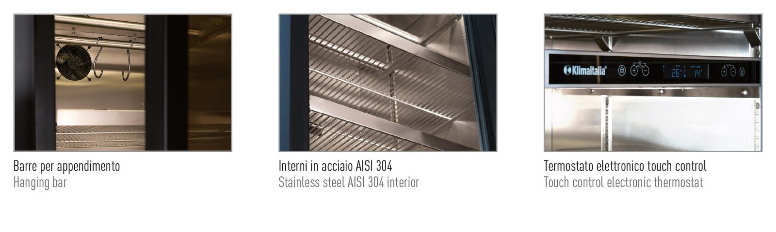 Equipped with a touch control electronic thermostat, automatic defrost system, and energy-efficient LED lighting, it guarantees ease of use and optimal preservation of food products. Its multiple shelves and hanging bars make it ideal for both catering professionals and gourmet food businesses.