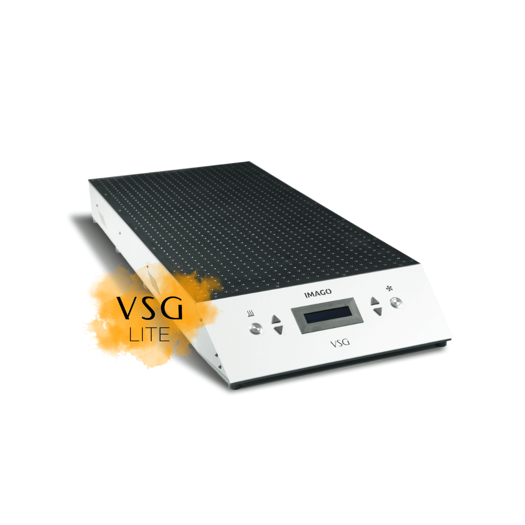 A simple solution supporting IMAGO digital printers. The design of the device is aesthetic and user-friendly, and its operation and maintenance are extremely economical. When not in use, the VSG Lite switches off automatically, which contributes to lower operating costs. Individual functions are controlled with just three buttons, making the device easy to operate. Suction table for UV LED and Nanosolvent printers The VSG Lite module automatically smoothes the substrate during printing and allows thin materials to be supported, increasing the precision and repeatability of UV LED prints on paper, foil, metal sheets, plywood, and fabrics. At the same time, it prevents deformation of details under the influence of heat from the UV LED lamp, thus facilitating printing on acrylic, PVC, and other plastics.